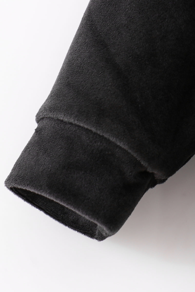 Show off your divine style with our Black Velvet Blessed Embroidery Mom&Me Sweatshirt! The luxurious velvet fabric and charming "blessed" embroidery make this a standout piece. Perfect for matching with your little one and spreading positivity wherever you go.