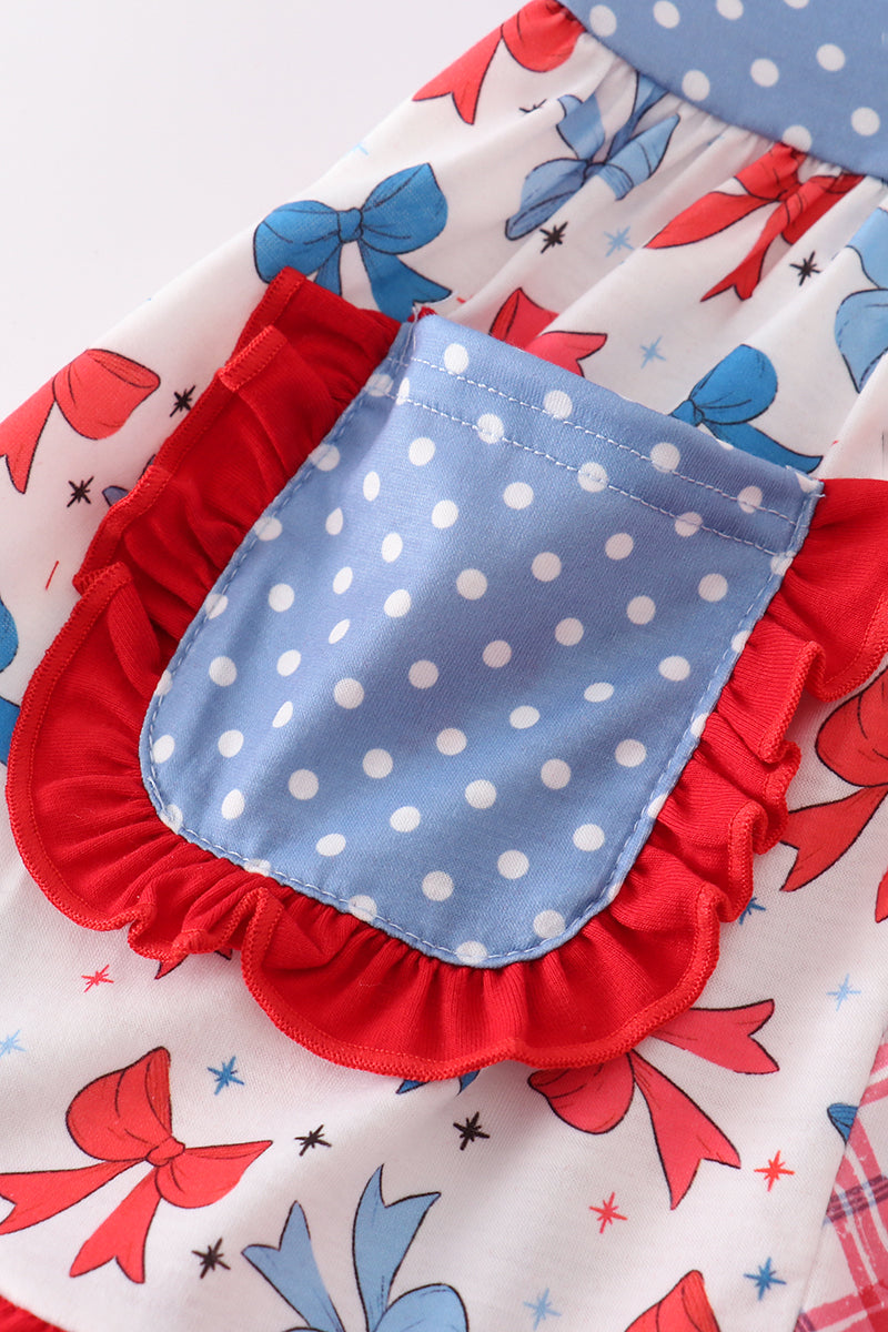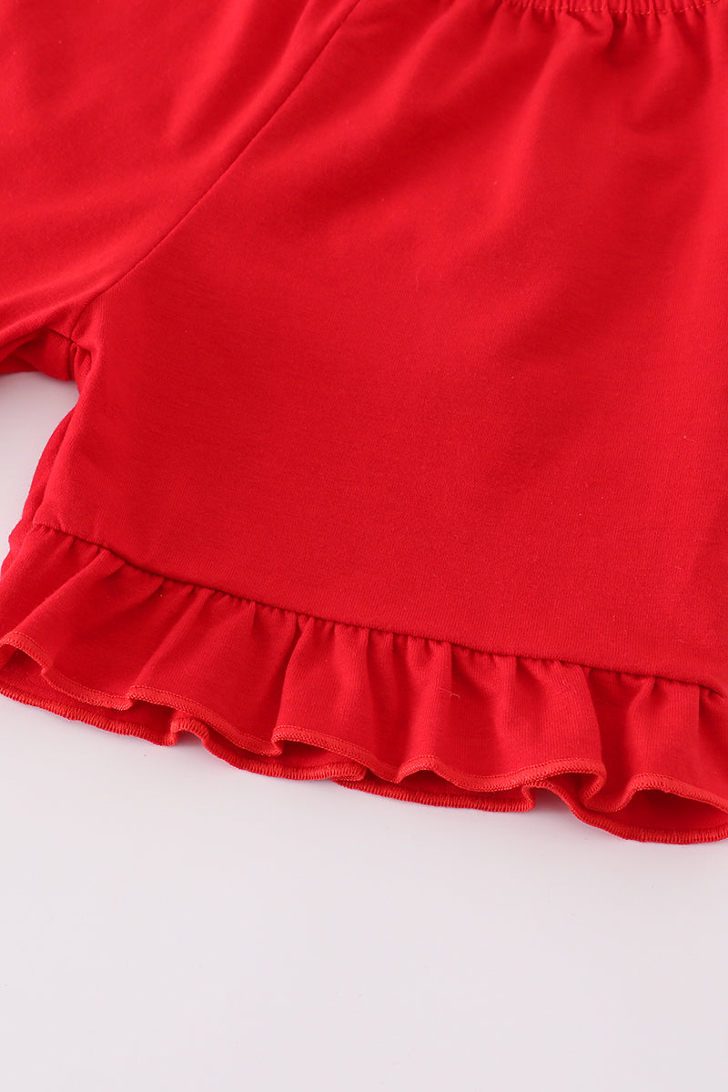Blue bow print ruffle shorts set