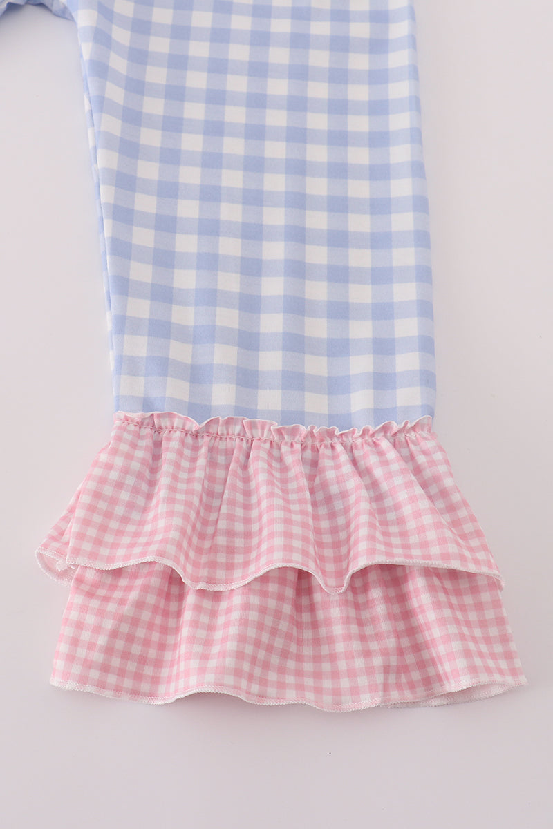 Step into whimsy with this Blue Floral Pumpkin Embroidery Ruffle Pants Set. Featuring charming pumpkin embroidery and delicate ruffles, this playful outfit adds a touch of fun to your wardrobe. Perfect for cozy days or festive occasions, it combines comfort with a unique, eye-catching design that’s sure to brighten your look.