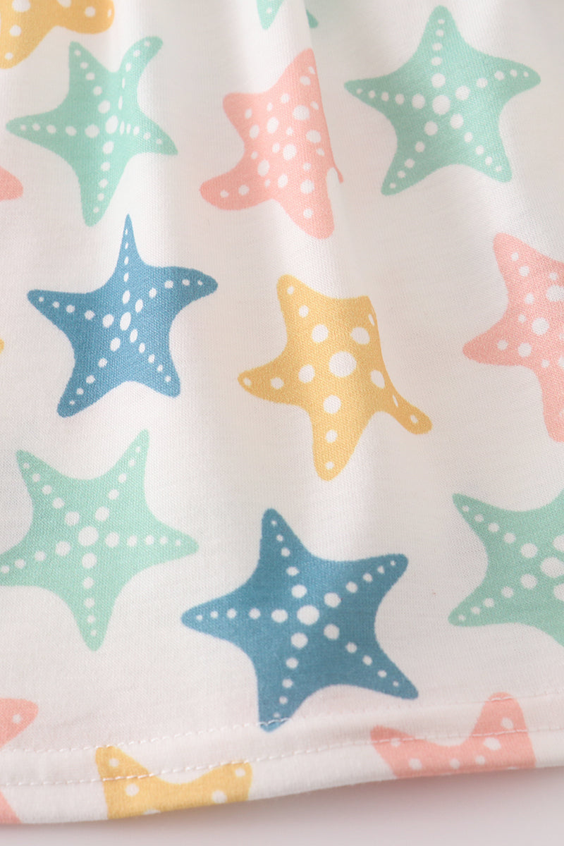 Blue seashell bow ruffle shorts set