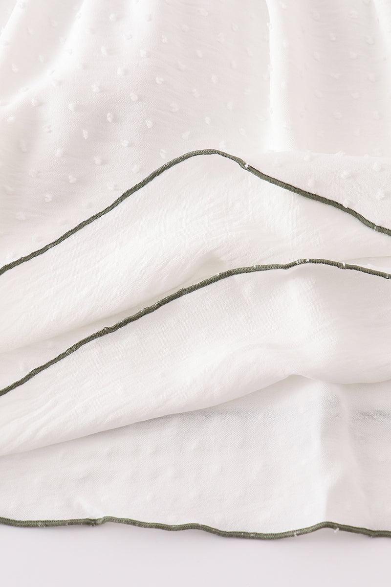 Take a walk on the wildflower side with this playful green floral print swiss dot dress. Perfect for any occasion, this dress combines feminine florals with a unique swiss dot texture for a fun and charming look. A must-have addition to your wardrobe for a touch of whimsy!