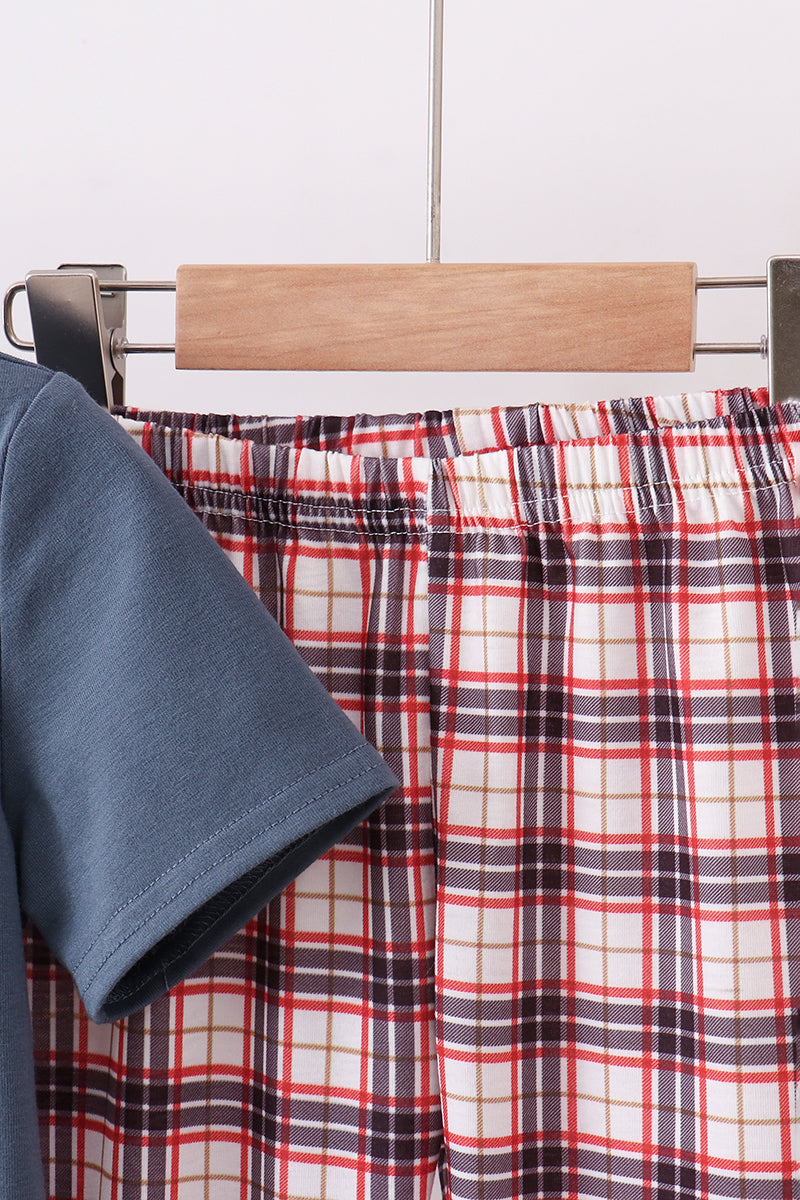 Navy puppy football applique pants set
