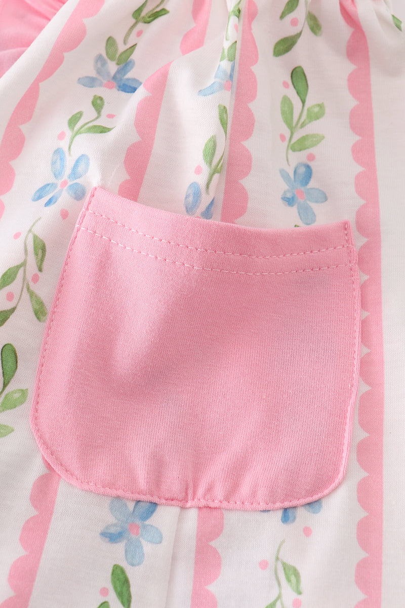Pink floral print girl ruffle dress