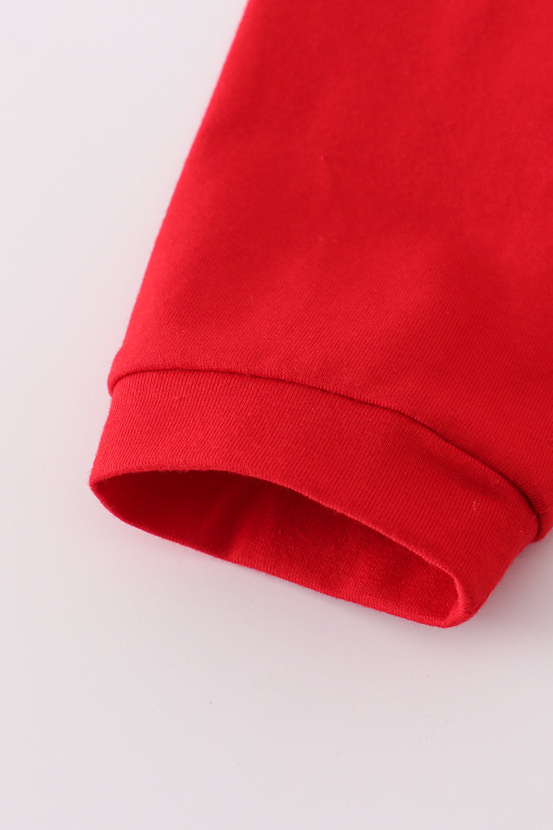 Get ready to jingle all the way in this playful Red Santa Claus smocked stripe pants set! Featuring festive stripes and a comfy smocked waist, it’s perfect for holiday fun and cozy celebrations. Embrace the season with style and cheer!